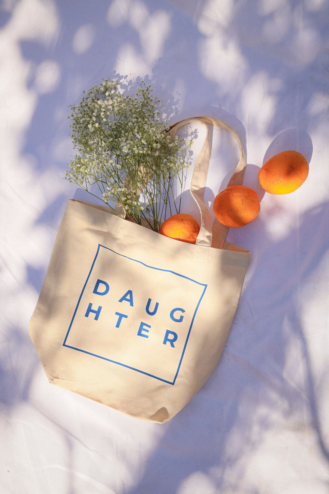 This natural cotton canvas tote is screen-printed with DAUGHTER in royal blue, a word that reminds us of where we come from and who we belong to. Inspired by the spoken word poem by Puno Selesho, this is more than just a bag. It's a gentle but firm reminder of identity, something you take with you wherever you go.